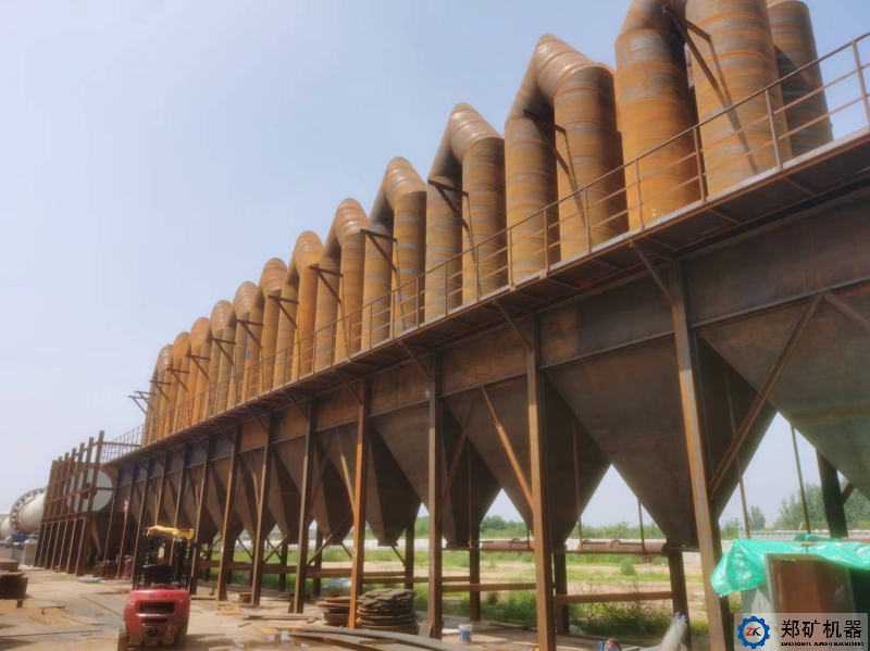 鋅蒸汽在引風(fēng)機作用下運動(dòng),與空氣中含有的氧氣反應生產(chǎn)氧化鋅,經(jīng)多管冷卻器冷卻后由氣體凝結成固體粉末沉降下來(lái),部分粉末來(lái)不及沉降被帶到脈沖袋式除塵器,經(jīng)過(guò)濾袋的過(guò)濾沉降下來(lái)。