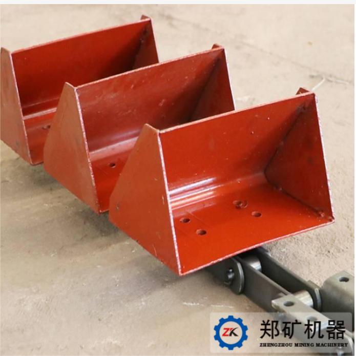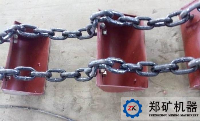 環(huán)鏈是較常用的一種牽引件,它的結構和制造比較簡(jiǎn)單,與料料的鏈接也很牢固。但環(huán)鏈相互接觸處易磨損,降低鏈的強度,且運行不夠平穩。