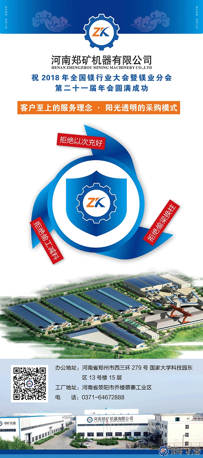 鄭礦機器祝2018年全國鎂行業(yè)大會(huì )暨鎂業(yè)分會(huì )*二十一屆年會(huì )圓滿(mǎn)成功