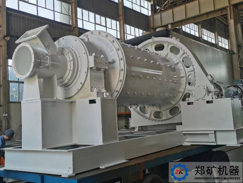 喂料設備將原料送入進(jìn)料裝置的溜子內,<150℃原料經(jīng)過(guò)進(jìn)料螺旋筒進(jìn)入筒體倉內,在倉內裝有一定數量的研磨體,由于筒體回轉,襯板將研磨體帶到一定高度,再利用其降落時(shí)的沖擊能和摩擦能將原料進(jìn)行破碎和研磨,在原料被破碎和研磨的同時(shí),由專(zhuān)設的引風(fēng)機經(jīng)過(guò)磨機的出料裝置將已研磨好的細粉吸出磨機進(jìn)入下道工序。